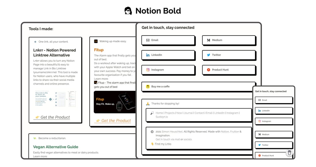 Notion Bold Design Template - Made for Fruition based Notion Websites