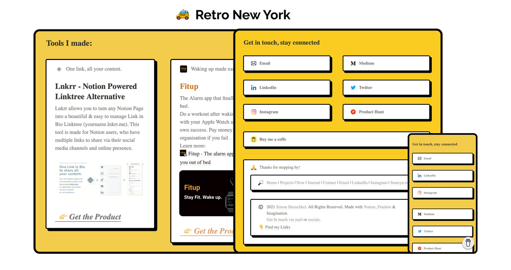 Retro New York Design Template - Made for Fruition based Notion Websites